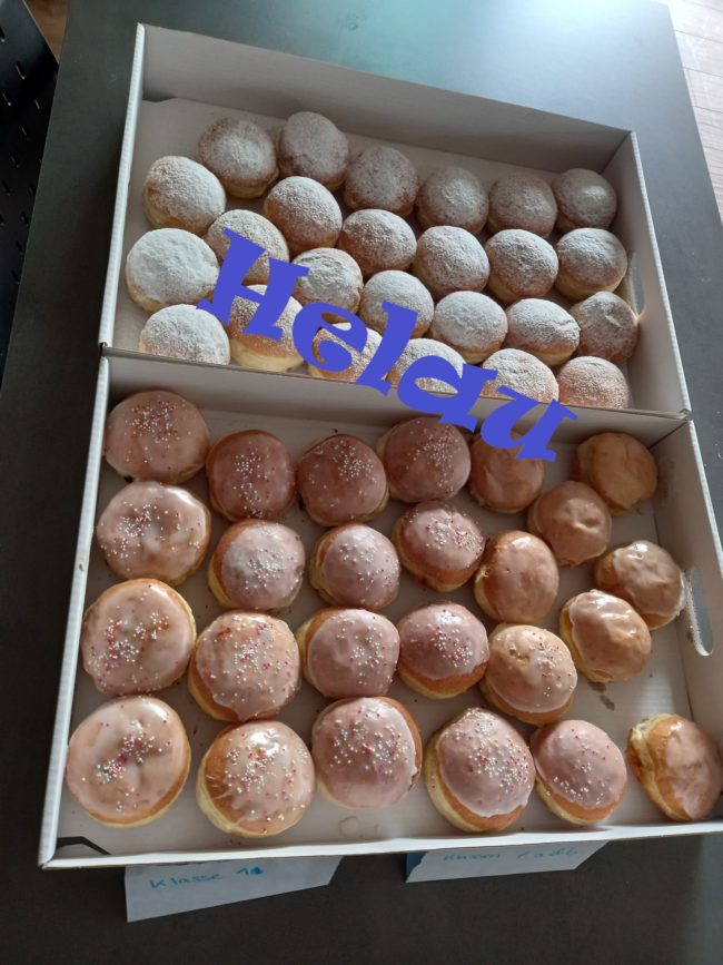 Es ist an der Villa Elisabeth Tradition, dass der Schulträger für alle Schülerinnen und Schüler sowie Lehrkräfte Pfannkuchen ausgibt und damit die Karnevalszeit einläutet. Für die Schülerinnen und Schüler war es eine tolle Überraschung. Wir haben es uns in der Frühstückspause schmecken lassen.