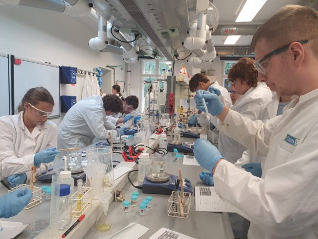 Die Schüler der neunten Klasse hatten die Aufgabe, eigene Tinte herzustellen. Dazu verwendeten sie natürliche Ausgangsstoffe wie schwarzen Tee, grünen Tee und Eichenrinde. Nach der erfolgreichen Herstellung konnten die Schüler ihre Tinte mit Pinseln ausprobieren und die Ergebnisse miteinander vergleichen. So erfuhren sie auf praktische Weise, dass alltägliche Naturmaterialien als Grundlage für Produkte wie Tinte…