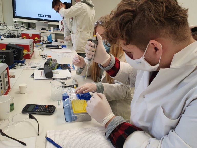 Im Biologieunterricht der 11. Klasse wird das Thema Cytologie behandelt. Nachdem sich die Schülerinnen und Schüler bereits einige Stunden mit der Geschichte der Zellen und der Mikroskopie beschäftigt haben, wurde es nun praktisch. Im Vordergrund stand das wissenschaftliche Arbeiten. Es wurden Frischpräparate einer Zwiebelhaut und einer Wasserpflanze hergestellt. Zudem haben die Schülerinnen und Schüler ein Quetschpräparat einer Banane hergestellt, um auch dieses anschließend unter dem Mikroskop zu beobachten.