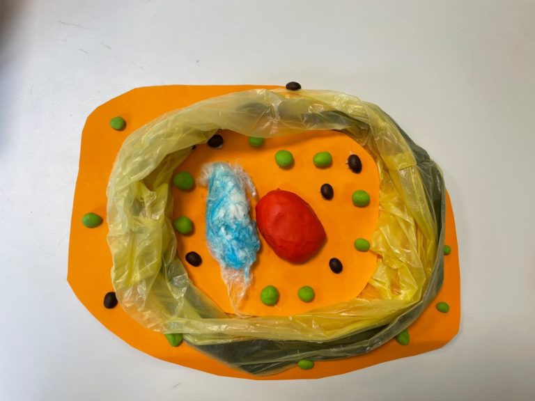 Die Schülerinnen und Schüler der 7. Klassen haben sich praktisch an das Thema „Aufbau einer Zelle“ gewagt und mit verschiedenen Materialien Zellmodelle geplant und entworfen. In den verschiedenen Modellen sieht man sehr schön die einzelnen Zellorganellen, wie z.B. die Chloroplasten.