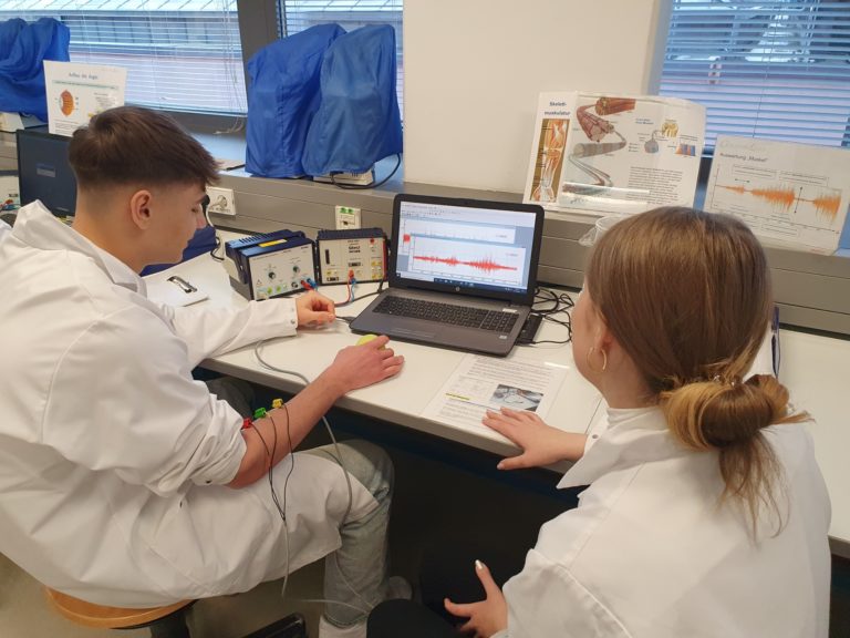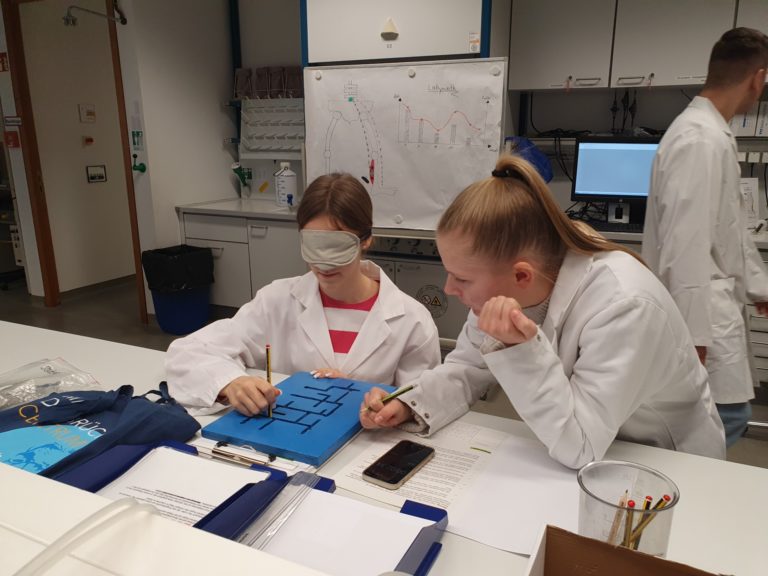 So wurden z.B. Membranpotentiale gemessen, Leitungsgeschwindigkeiten markloser Nervenfasern eines Regenwurms und markhaltiger Nervenfasern eines Menschen verglichen sowie mit Hilfe eines Finger-Labyrinthes Lernprozesse untersucht. Auch Ursachen und Symptome von Alzheimer wurden erarbeitet. Am Ende haben alle Gruppen die Ergebnisse ihrer Untersuchungen präsentiert und ausgewertet.