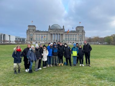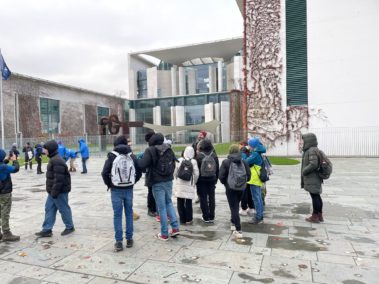 Klasse 7b: Am 18.11.22, im Rahmen des Lesetags, hat die Klasse 7b das Berliner Stadtzentrum besucht. Unter dem Motto „Die beschriftete Stadt“, einem Konzept des Literaturwissenschaftlers Angel Rama, haben die Schülerinnen und Schüler mit dem Vortrag von Reden, Berichten und Gedichten, von Persönlichkeiten wie Angela Merkel, Daniel Liebeskind, Martin Luther, Paul Celan und Heinrich Heine unter anderem den Berliner Hauptbahnhof, den Bundestag, den Gendarmenmarkt das Sinti- und Roma-Denkmal, das Sony Center und das Brandenburger Tor besucht.