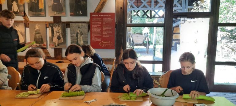 Am Donnerstag, dem 06.10., fuhren wir, die Klasse 8a, mit dem Zug nach Lübbenau. Mit dem Paddelkahn starteten wir zum „rum-GURKEN“. Nach einer Stunde auf der Spree gingen wir in Lehde vor Anker und an Land, wo uns der Gurkenexperte Harald-Gurke auf eine geschichtliche Reise zur Spreewaldgurke ins Museum mitnahm. Nachdem uns die Geheimnisse des Gurkeneinlegens anvertraut wurden, waren unser Können und Geschmack gefragt. Wir kreierten unsere eigene Gurkensorte für die Klasse.