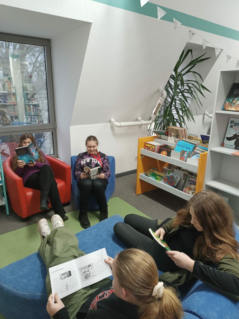 Hier bekamen die Schülerinnen und Schüler eine Einführung in die Nutzung der Bibliothek und konnten überraschender Weise feststellen, dass es neben den klassischen Büchern auch zahlreiche andere Medien gibt, die hier genutzt und ausgeliehen werden können. Auch für eine kleine Entdeckungstour war im Anschluss noch Zeit.