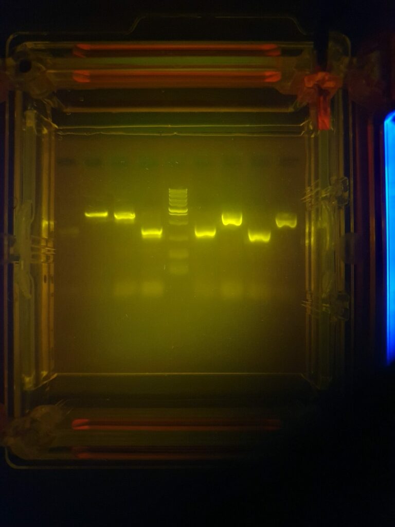 „Im Rahmen eines Biologie-Projekts hatten unsere beiden elften Klassen die Aufgabe, einen fiktiven Kriminalfall zu lösen: Nach dem mysteriösen Verschwinden einer Frau wurden in den Autos zweier Tatverdächtiger Haarproben sichergestellt, aus denen DNA-Proben aufbereitet und den Schülerinnen und Schülern zur weiteren Untersuchung zur Verfügung gestellt wurden. Mithilfe molekularbiologischer Methoden sollten sie ermitteln, ob eine der beiden Proben der verschwundenen Frau zugeordnet werden kann. Eine genetisch bedingte Erkrankung der Frau erleichterte hierbei die Analyse, da das Gen „CFTR“ bei ihr nur halb so lang war wie bei einem gesunden Menschen. Nach Vervielfältigung des für die Untersuchung relevanten DNA-Abschnitts mittels Polymerasekettenreaktion (PCR) erfolgte die Auftrennung und Sichtbarmachung der entstandenen Fragmente durch Agarose-Gelelektrophorese. Zum Vergleich wurde bei der Untersuchung auch eine Positiv- und eine Negativkontrolle mitgeführt. Schlussendlich konnte der Täter so von beiden Klassen ermittelt werden.