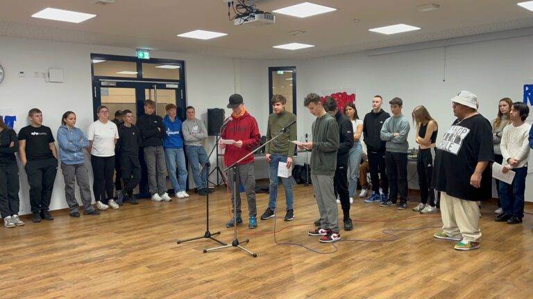 Für unsere beiden 9. und 10. Klassen hieß es in dieser Woche “Hip Hop macht Schule”. In diesem Projekt wurden einige bisher verborgene Tanztalente, Texter und Rapper entdeckt. Mit viel Engagement und Herz arbeiteten die Schülerinnen und Schüler in fünf Tagen ein Programm aus, das am Freitag vor den Mitschülerinnen und Mitschülern und Lehrkräften präsentiert und mit viel Applaus, Anerkennung und Respekt belohnt wurde.