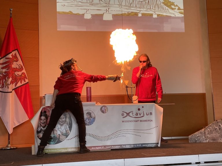 In einer erlebnisreichen Auszeichnungsveranstaltung mit Präsentation aller Siegerexponate, Begrüßung durch Herrn Freiberg und einer Show vom Extavium Potsdam wurde die Brücke der Schülerinnen Noemi und Lotte mit Platz 5 ausgezeichnet. Wir gratulieren zu diesem tollen Platz und freuen uns, dass wir für den Wettbewerb 2024 eingeladen wurden.