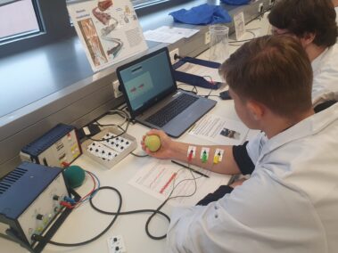 Nervenzellen in Aktion – so das Motto des Laborkurses „Neurone und Gliazellen“, welcher von unseren Biologiekursen des Jahrgangs 12 im Gläsernen Labor Berlin-Buch besucht wurde.