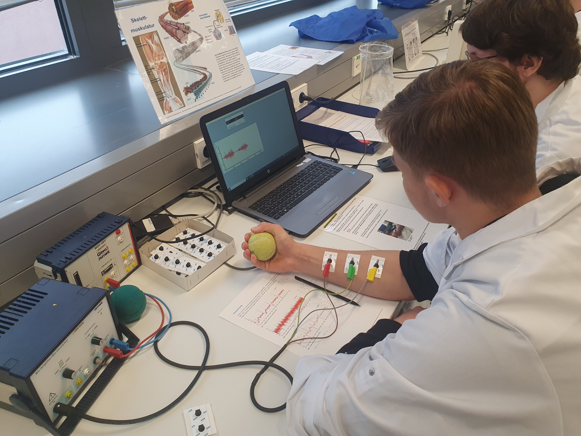 Neun Stationen standen den Schülerinnen und Schülern zum Experimentieren zur Verfügung. Neben Modellexperimenten zum Messen von Potenzialen an verschiedenen Membranen wurden auch Regenwurm und Mensch als Versuchsobjekte zum Erkenntnisgewinn genutzt. Dabei wurden beispielsweise die Leitungsgeschwindigkeiten verschiedener Nervenfasern ermittelt sowie Augen- und Unterarmmuskelbewegungen untersucht. Auch das eigene Lernverhalten konnte anhand der Arbeit mit einem Fingerlabyrinth sowie mit einer Prismenbrille dokumentiert werden. Zudem wurde den Ursachen der neurodegenerativen Erkrankung Alzheimer auf den Grund gegangen. Zum Abschluss präsentierten alle Gruppen einander ihre jeweiligen Ergebnisse und werteten diese aus.