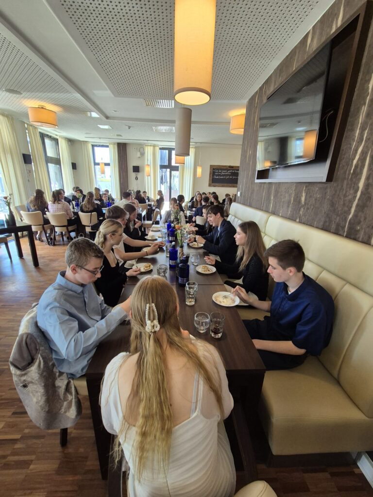 Das gemeinsame „Knigge-Essen“ dient nicht nur der Umsetzung in die Praxis, sondern stärkt das soziale Miteinander und schafft eine angenehme Atmosphäre für alle.