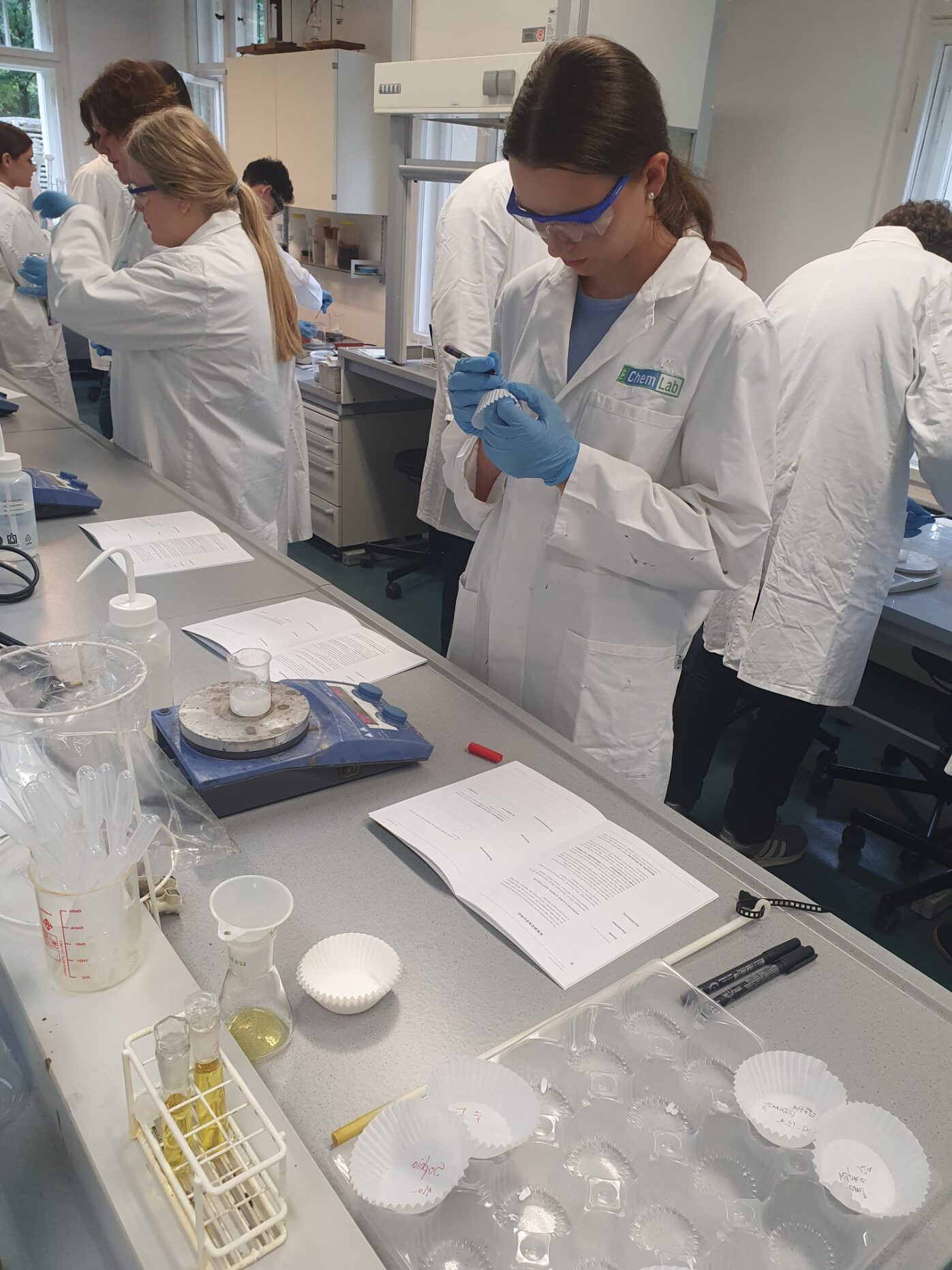 Zum Thema Geruch wurde unter anderem der Laborkurs „Immer der Nase nach! – Destillation von Duftstoffen“ im Gläsernen Labor Berlin-Buch besucht. Hier wurden natürliche Duftstoffe durch verschiedene Trennmethoden aus Pfefferminze, Lavendel, Zimt und Zitrusfrüchten gewonnen sowie künstliche Aromen durch Veresterungsreaktionen hergestellt und schließlich Duftseifen produziert.