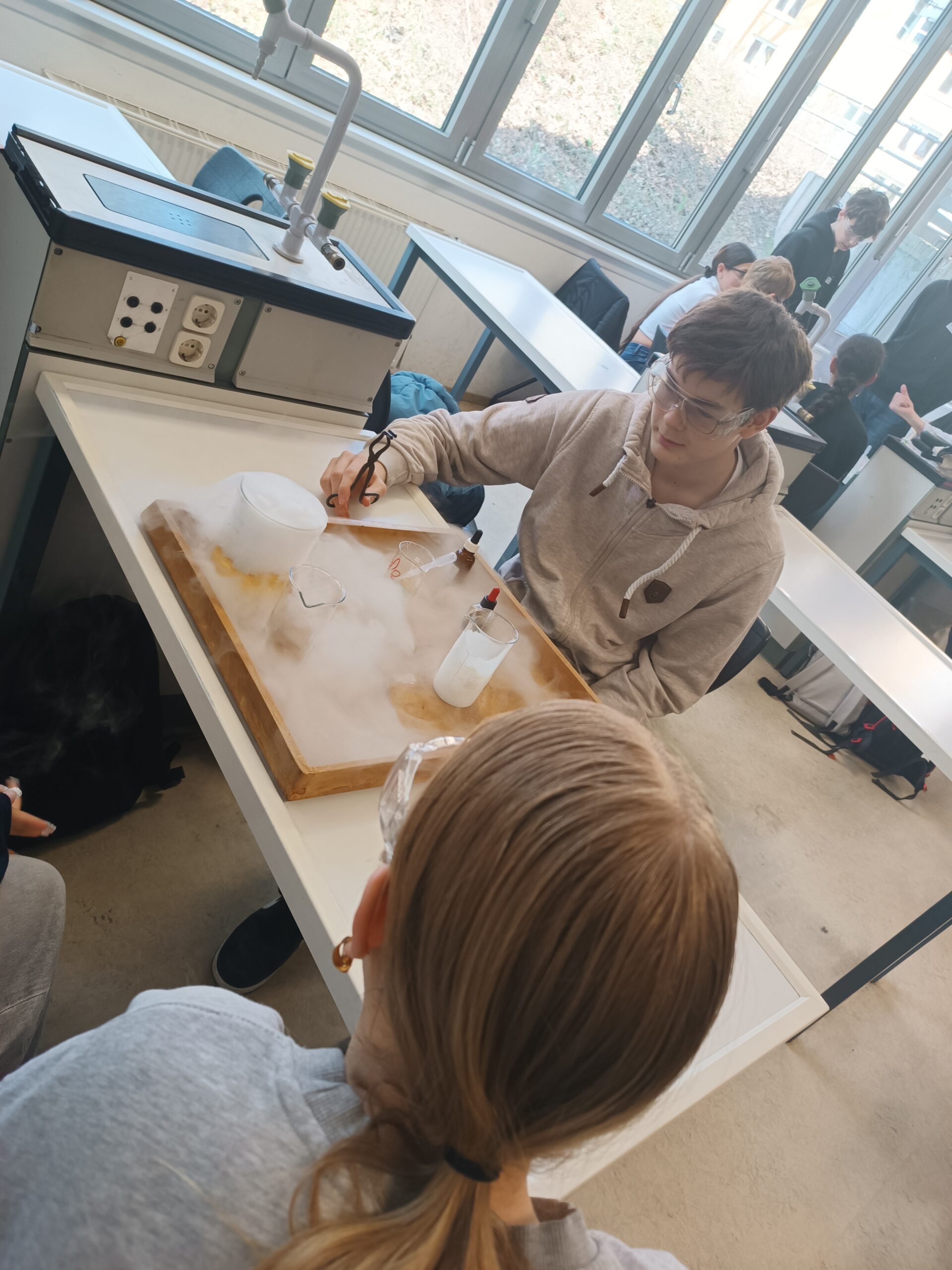Ein besonderes Highlight war das Experimentieren mit Trockeneis, das für Begeisterung und Staunen sorgte.