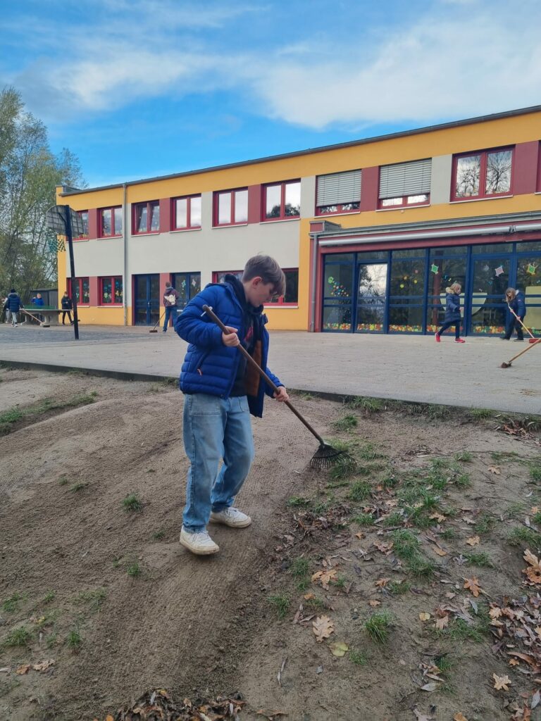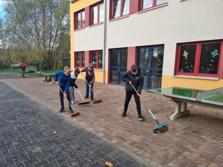 Heute war es wieder soweit. Die Schülerinnen und Schüler der 5. und 6. Klasse führten den alljährlichen Herbstputz mit großer Begeisterung durch. Dabei wurde viel gefegt und geharkt. Die Klassen versuchten eifrig den Schulhof von Laub zu befreien. Alle packten mit an und wechselten sich mit den Aufgaben ab. Schon nach kurzer Zeit sah unser Schulhof besenrein aus.