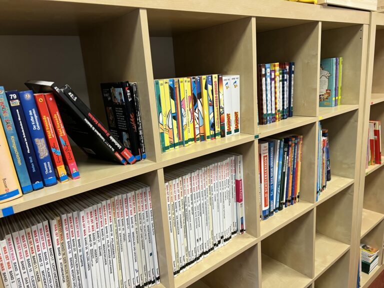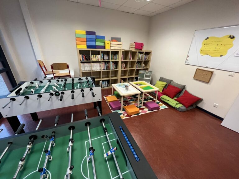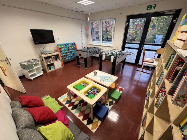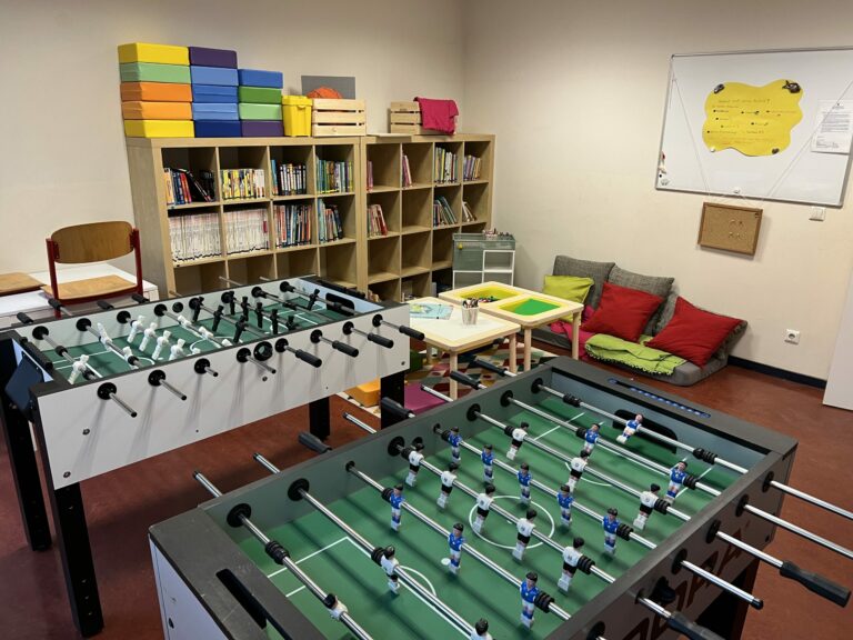 Dank der großzügigen Spenden konnten die Erzieherinnen und Erzieher im Herbst einen gemütlichen Raum mit Sitzecke, Bibliothek, Tischfußball und neuen Spielsachen einrichten. Hier können sich die Kinder in den Pausen und während der Betreuung beschäftigen.