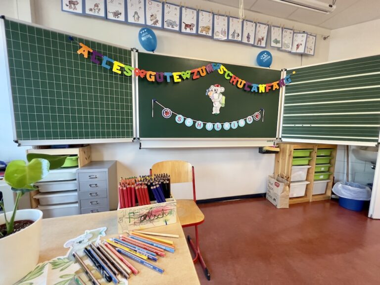 Am Freitag, den 1. September 2023, war unsere Grundschule Villa Elisabeth wieder festlich in den Farben Blau und Weiß geschmückt: 20 Erstklässlerinnen und Erstklässler feierten ihre Einschulung und wurden herzlich von ihrer Klassenlehrerin Frau Pohl und ihrem Erzieher Herrn Monschau begrüßt.