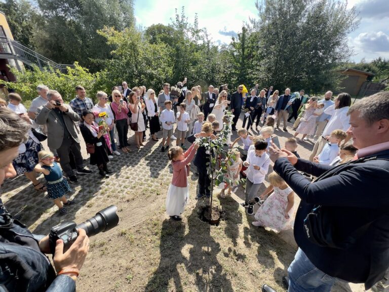 Während der anschließenden ersten „Unterrichtsstunde“ im Klassenraum bastelten die neuen Schülerinnen und Schüler einen Koala, den die Kinder beim traditionellen Pflanzen des klasseneigenen Baumes anhängen konnten.