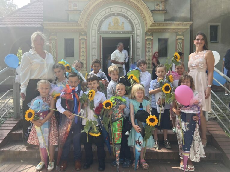Die aufgeregten und stolzen Kinder betraten mit leuchtenden Augen und unter dem eindrucksvollen Klang der Orgel die feierlich dekorierte Friedenskirche Wildau in unserer direkten Nachbarschaft. Nachdem sie ihren Platz in der ersten Reihe eingenommen hatten, wurden die Erstklässlerinnen und Erstklässler  mit einfühlsamen Worten von Anna-Maria von Platen und Heike Schersching begrüßt. Die Schülerinnen und Schüler der Klasse 2 präsentierten ihr liebevoll einstudiertes Einschulungsprogramm, welches den Erstklässlerinnen und Erstklässlern sowie den Gästen sehr gefiel.