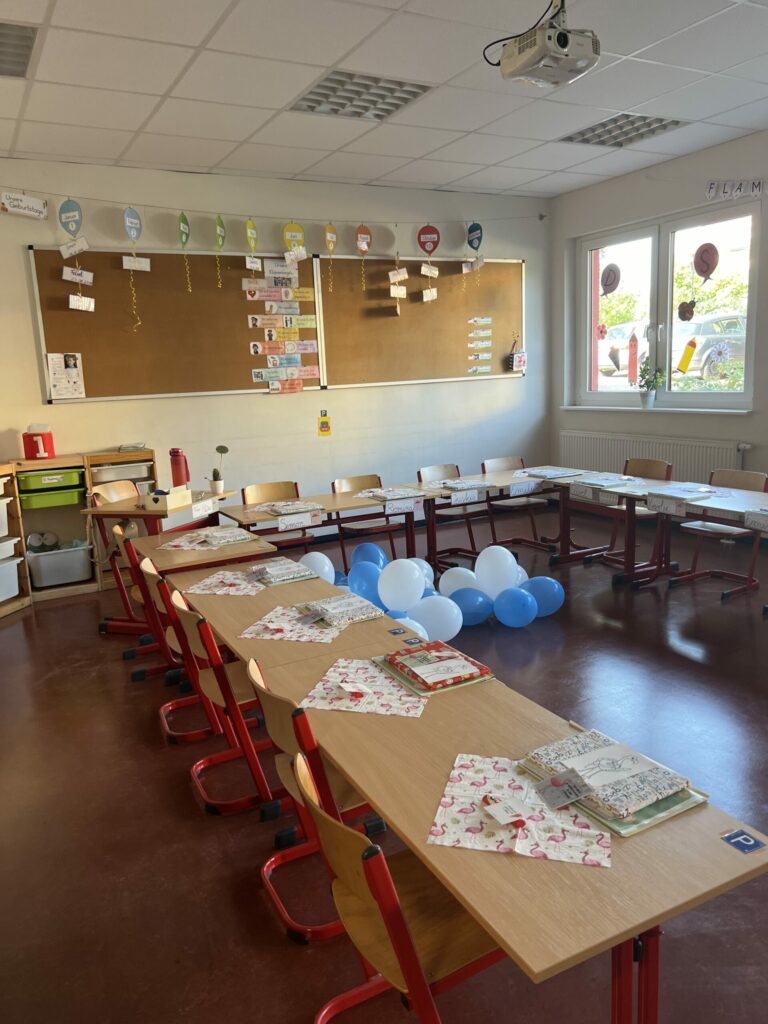 Am Freitag, den 6. September 2024, war unsere Grundschule Villa Elisabeth wieder festlich in den Farben Blau und Weiß geschmückt: 13 Erstklässlerinnen und Erstklässler feierten ihre Einschulung und wurden herzlich von ihrer Klassenlehrerin Frau Glück und ihrer Erzieherin Frau Matthes begrüßt.