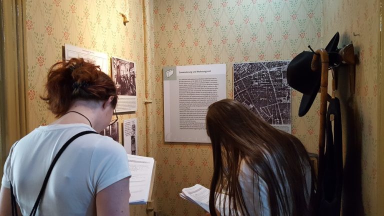 Durch ein Referat, den Besuch einer Museumswohnung und beim Rundgang durch den Kiez informierten wir uns über die Architektur um 1900 und die Wohnbedingungen in den Mietskasernen.
