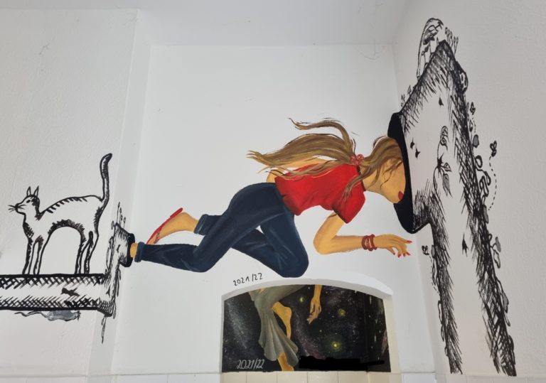 Kunst begleitet und leitet uns, hängt in Rahmen in unserer Schulgalerie, ist auf Wänden und an Türen. Kunst macht das Leben vielfältiger und unsere Schule zu etwas Besonderem. Und das vom Keller bis unters Dach! Das schönste Werk in der Schulgalerie? Die schönste Tür im Schulhaus? Die schönste Wand? Warum festlegen?! Vielfalt macht das Leben bunt und spannend! Und auch in diesem Schuljahr gibt es bei uns wieder etwas Neues:
