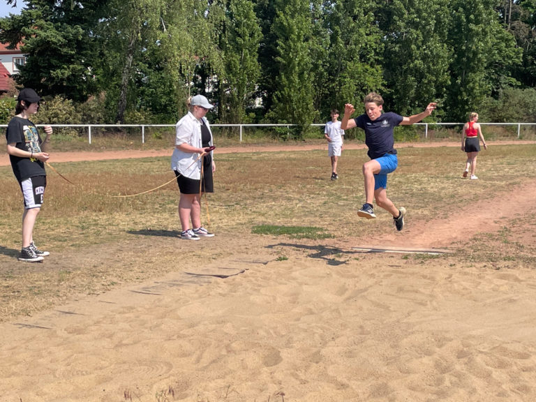 Am 09.06.23 war es wieder soweit – der Tag unseres Schulsportfestes stand an. Nun galt es für die Schülerinnen und Schüler der 7. bis 10. Klassen des Gymnasiums Villa Elisabeth im Rahmen der Bundesjugendspiele in vier Disziplinen gegeneinander anzutreten.
