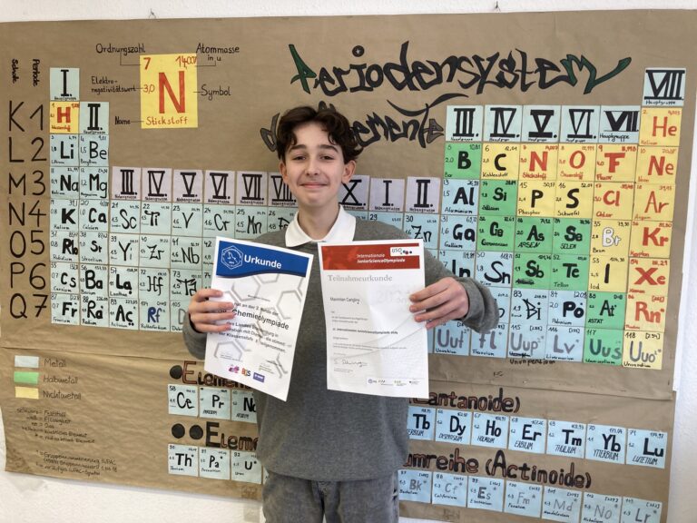 Wir sind unglaublich stolz auf seinen Erfolg und möchten ihm herzlich zu seinen Urkunden gratulieren. Sein Einsatz und seine Leidenschaft für die Naturwissenschaften sind beispielhaft und zeigen, was mit Fleiß und Engagement erreicht werden kann. Wir danken Maximilian für sein herausragendes Engagement und wünschen ihm weiterhin viel Erfolg auf seinem Weg in der Welt der Naturwissenschaften.