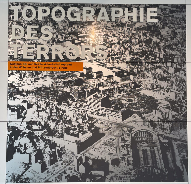 Dieses wurde in der ehemaligen Prinz-Albrecht-Straße (heute Niederkirchnerstraße)/Ecke Wilhelmstraße unweit des Potsdamer Platzes errichtet. Hier befanden sich von 1933 bis 1945 die wichtigsten Zentralen des nationalsozialistischen Terrors: das Geheime Staatspolizeiamt mit eigenem „Hausgefängnis”, die Reichsführung-SS, der Sicherheitsdienst (SD) der SS und während des Zweiten Weltkriegs auch das Reichssicherheitshauptamt. Alle diese Institutionen waren maßgeblich an der Verfolgung und Vernichtung politischer Gegner, Kriegsgefangener und aus rassistischen Gründen Ausgegrenzter beteiligt.
