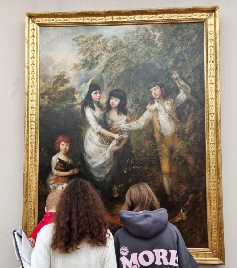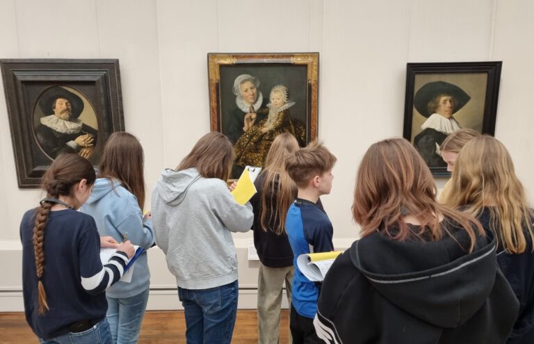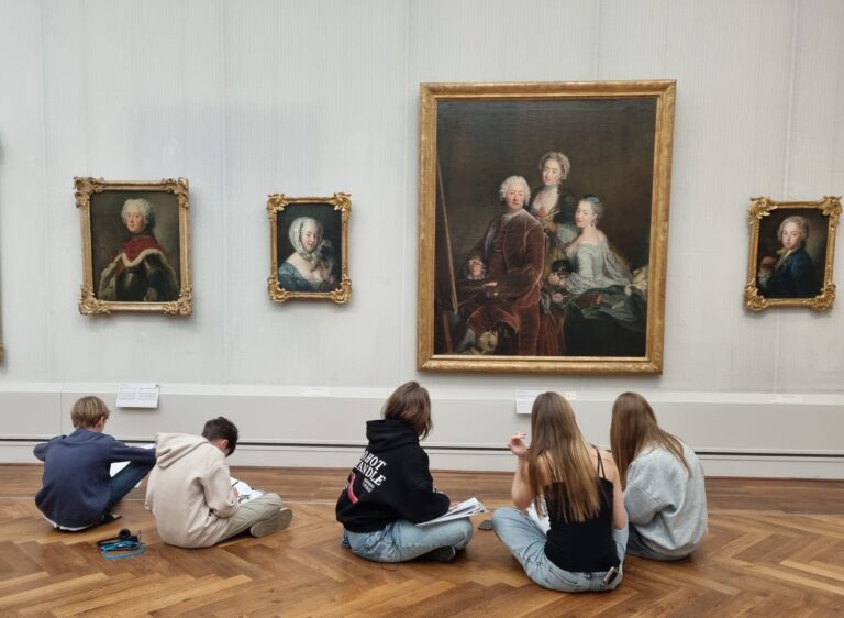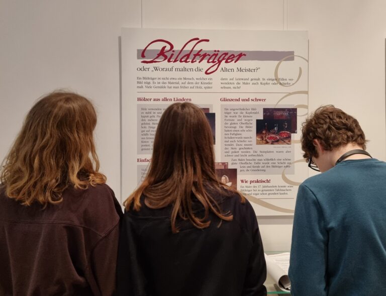 Langweiliges Thema? Kein Stück! Es gibt so viel zu sehen in der Gemäldegalerie! Da finden alle ein Lieblingsbild… oder zwei… oder fünf! Die Gemälde erzählen Geschichten, man muss sich nur die Zeit nehmen sich diese Geschichten erzählen zu lassen. Auf der Suche nach Stillleben und  Porträts kamen wir vorbei an Historienbildern, Landschaftsmalerei und natürlich jeder Menge Genrebildern. Was auf dem Stuhl im Interieur liegt? Na, eine Jacke mit Pelzbesatz natürlich! Hm… und wie viele Rinder sind auf dem Tierbild zu sehen? Wird nicht verraten! Neue Erkenntnisse brachte auch die Entdeckungsreise im Kinder-Reich! Unglaublich, wie dünn Blattgold ist! Wir wissen nun, warum die Palette ein Loch hat, woher das Wort Pinsel kommt oder woraus Pinselhaare überhaupt bestehen, welche Bildgattung im 17. Jahrhundert am teuersten war,  was ein Stifter ist und vieles, vieles, vieles mehr.
