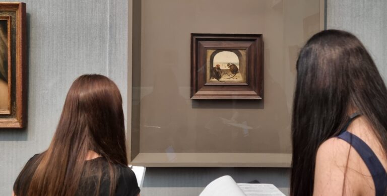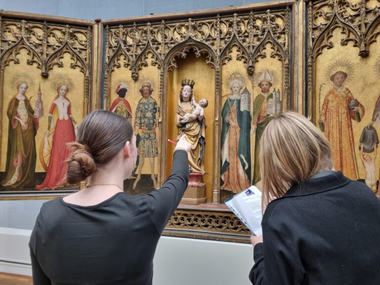 Mit dieser Frage beschäftigten wir uns im Unterricht und wissen deshalb: es gibt ganz viele verschiedene Möglichkeiten. Größenabnahme und Überdeckung kennt ja jeder, spannender sind da schon Luft- und Farbperspektive. Profis kennen nicht nur Begriffe wie Fluchtlinien und Fluchtpunkt, sondern können die Zentralperspektive auch selbst konstruieren! Die Entwicklung der Darstellung von Räumlichkeit lässt sich vor den Werken in der Gemäldegalerie in Berlin sehr gut nachvollziehen!
