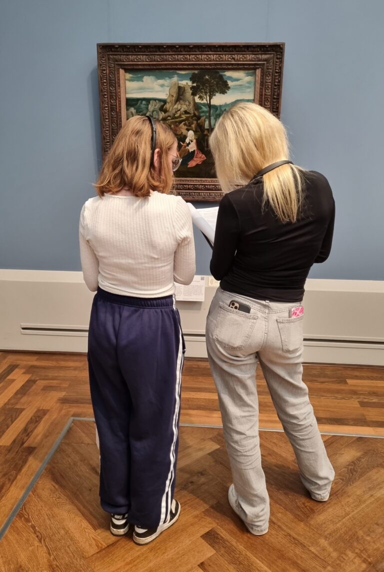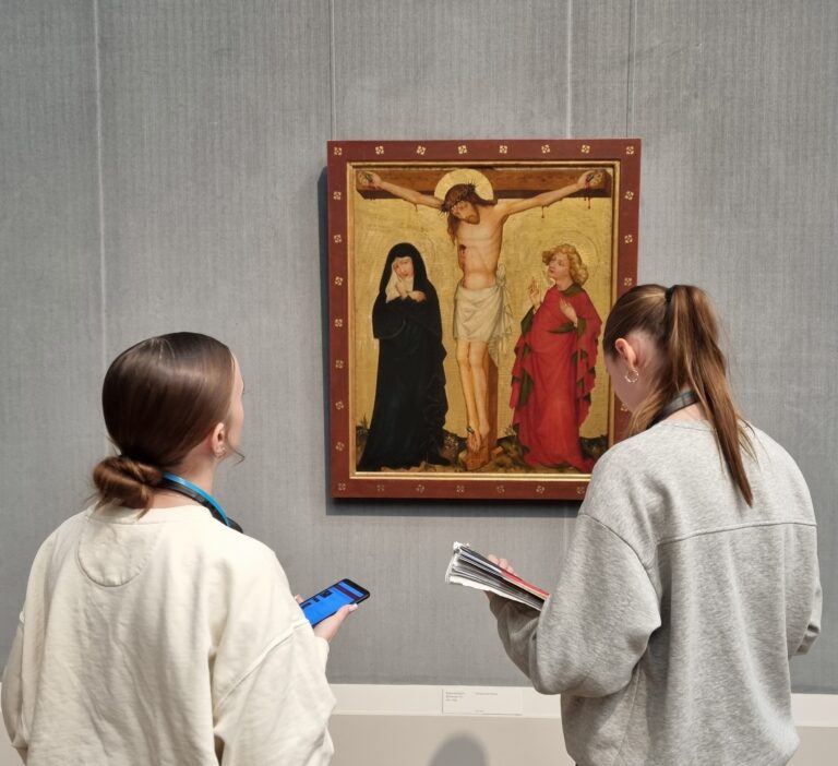 Mit dieser Frage beschäftigten wir uns im Unterricht und wissen deshalb: es gibt ganz viele verschiedene Möglichkeiten. Größenabnahme und Überdeckung kennt ja jeder, spannender sind da schon Luft- und Farbperspektive. Profis kennen nicht nur Begriffe wie Fluchtlinien und Fluchtpunkt, sondern können die Zentralperspektive auch selbst konstruieren! Die Entwicklung der Darstellung von Räumlichkeit lässt sich vor den Werken in der Gemäldegalerie in Berlin sehr gut nachvollziehen! Außerdem ging es noch um das große Thema Bildgattungen, klingt einfach, ist aber gar nicht immer alles so eindeutig. Tja, und auch die Wahl des Lieblingswerks war nicht leicht!
