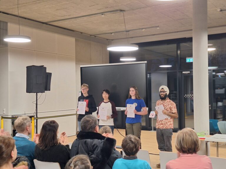 Am 22.01.2025 war es endlich so weit. Li Guanwen aus der 10b durfte sich ihren dritten Preis in der Regionalrunde der Mathematik-Olympiade bei einer Preisverleihung am DESY (Deutsches Elektronensynchrotron) in Zeuthen abholen. Zur Einstimmung gab es einen Vortrag über „Neutrinos im Eis“ und „Wie wird man eigentlich WissenschaftlerIn?“. Die insgesamt 31 PreisträgerInnen aus den Klassenstufen 4 bis 11 wurden danach in einer Preisverleihung, die mit mathematischen Anekdoten ausgeschmückt wurde, geehrt. Zusätzlich zur Urkunde durfte sich Guanwen auch über einen Büchergutschein freuen. Die Preisverleihung verließ sie motiviert mit den Worten „Im nächsten Jahr schaffe ich den zweiten Platz!