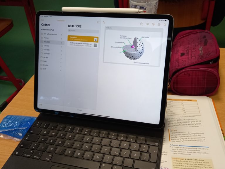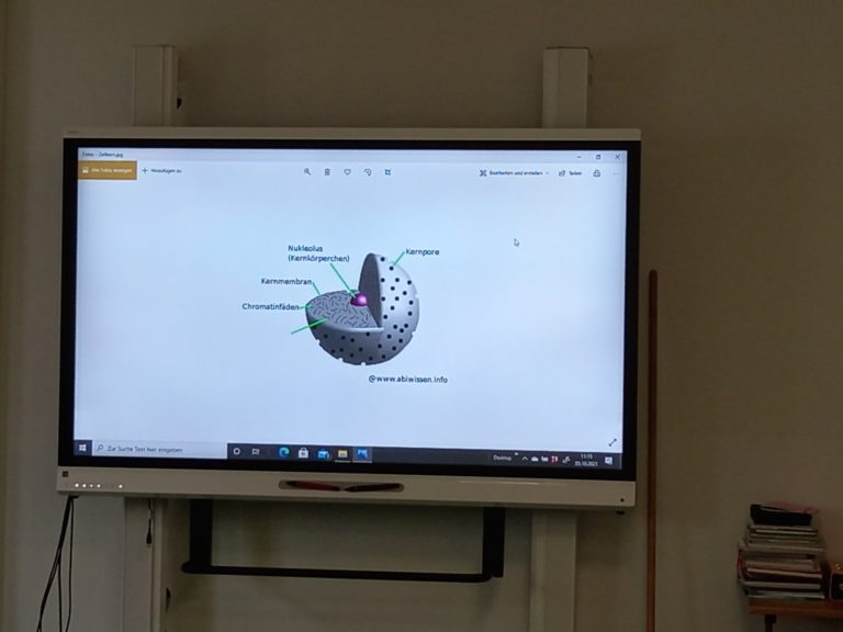 Die Klasse 10 der Oberschule Villa Elisabeth hat heute in Vorbereitung auf das nach den Ferien stattfindende Experiment zur DNA-Isolierung im Biologieunterricht den Aufbau des Zellkerns, der Chromosomen und der DNA wiederholt.