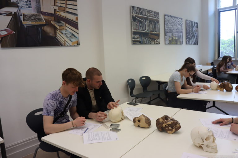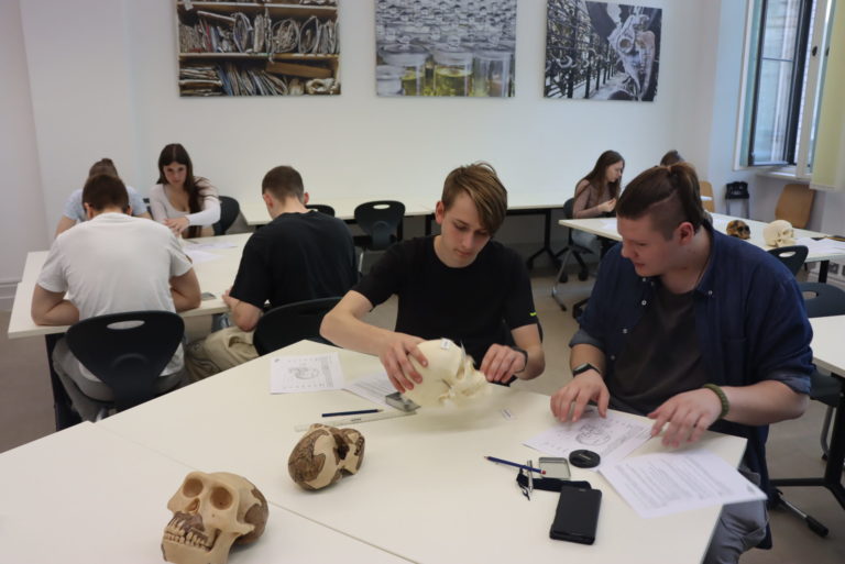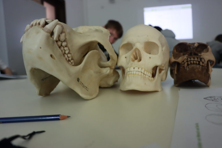 … die Klasse 10 besuchte das Museum für Naturkunde, wo sie an einem Workshop zum Thema Evolution des Menschen teilgenommen hat. Mit Hilfe verschiedener Schädel wurde dabei anhand der Schädelmerkmale die Entwicklung unserer Vorfahren vom Australopithecus afarensis bis zum Homo neanderthalensis bund schlussendlich zum Homo sapiens nachvollzogen. Wer hätte gedacht, dass wir nicht das größte Gehirn besitzen…?
